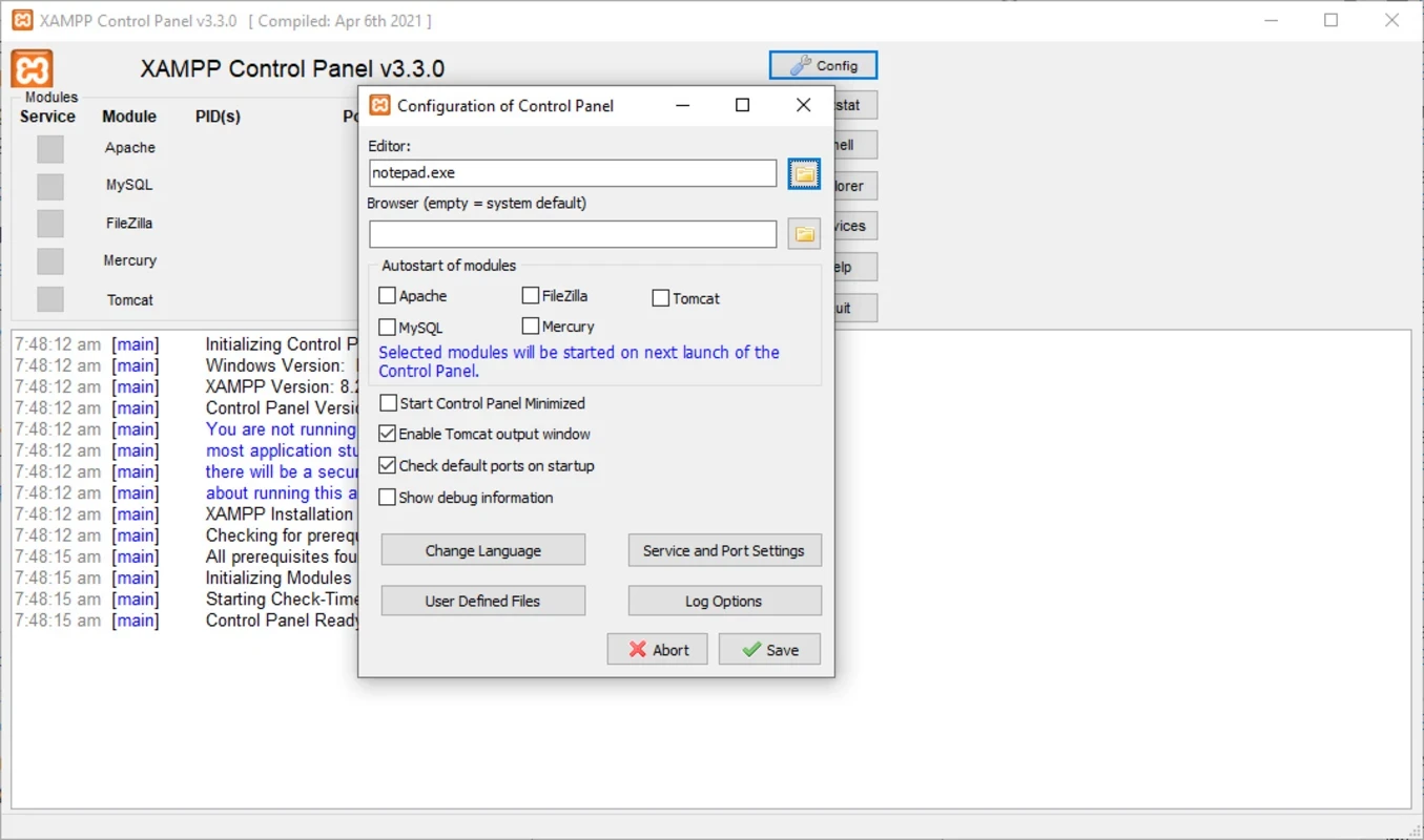 تم تطوير هذه الأداة المبتكرة من قبل شركاء Apache، بما في ذلك خادم Apache HTTP وقاعدة بيانات MariaDB والمترجمين الفوريين للبرامج النصية المكتوبة بلغات برمجة مختلفة مثل PHP وPerl وغيرها. تجعل لوحة التحكم سهلة الاستخدام وظائفك المختلفة سريعة وسلسة، مثل بدء أو إيقاف الخدمات، والتحقق من الشعارات، وتعديل الإعدادات الأساسية.